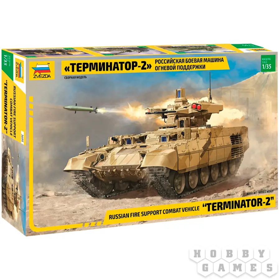 "Терминатор-2" – современная российская боевая машина огневой поддержки, созданная для сопровождения танков и повышения их боевой эффективности. Это усовершенствованная версия первой модели "Терминатор", отличающаяся улучшенной защитой, огневой мощью и маневренностью.