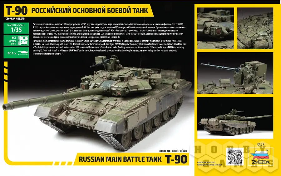 Воссоздайте в деталях один из самых передовых российских танков – Т-90, разработанный в конструкторском бюро "Уралвагонзавода" как усовершенствованная модификация Т-72. Принятый на вооружение в 1993 году, Т-90 стал символом мощи и технологического превосходства российского танкостроения.