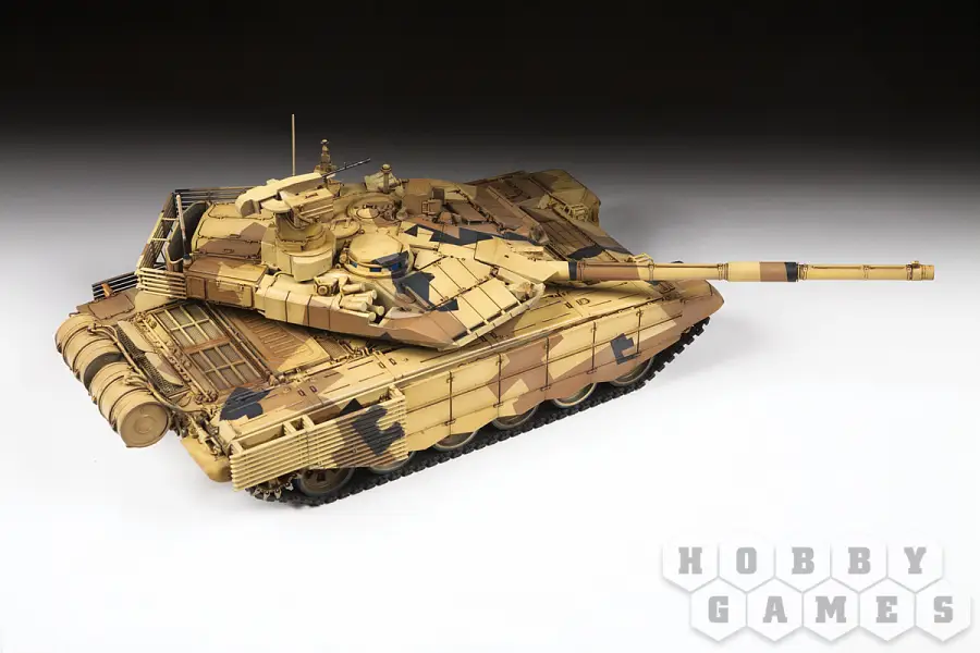 Сборная модель российского основного боевого танка Т-90МС – одной из самых современных версий танков Т-90. Впервые продемонстрированная в 2009 году, модель Т-90МС "Тагил" с новой башней привлекла внимание своей усовершенствованной конструкцией. Модернизация включала улучшения в броневой защите, системах управления огнём, а также в подвеске и двигателе, что значительно повысило маневренность и боевые характеристики машины.
