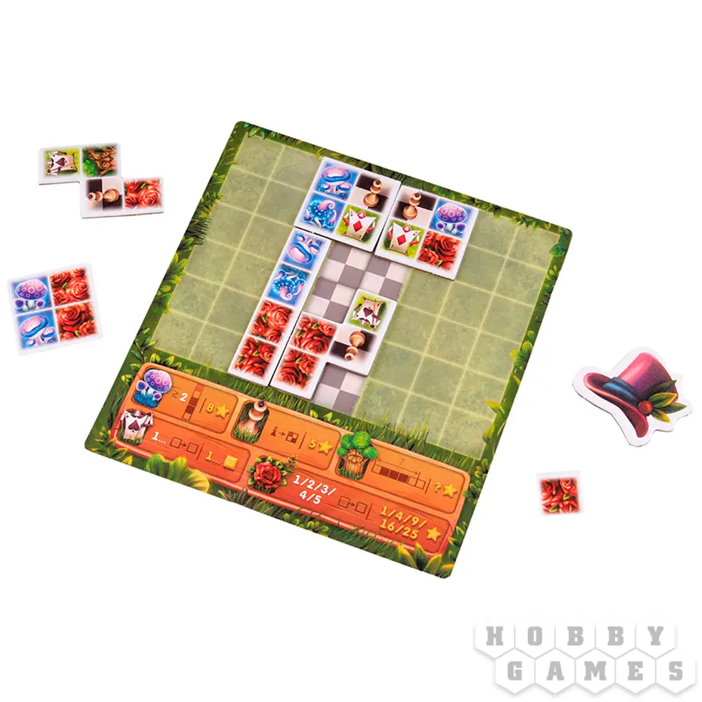 Гуляя между деревьев магического леса, Алиса случайно забрела в королевский сад. Садовники из кожи вон лезут, чтобы угодить всем капризам Королевы, которые не так-то просто совместить друг с другом. Чтобы помочь несчастным садовникам, Алиса согласилась решить эту задачку и найти подходящий вариант рассадки, где деревья будут находиться порознь друг от друга, а розовые кусты получат достаточно солнечного света, чтобы на них выросли самые пышные цветы в королевстве. Эта с любовью оформленная логическая игра по мотивам книг Льюиса Кэрролла порадует вас своими прекрасными иллюстрациями и классными бархатными мешочками, а играть в неё можно как с друзьями, так и самостоятельно.