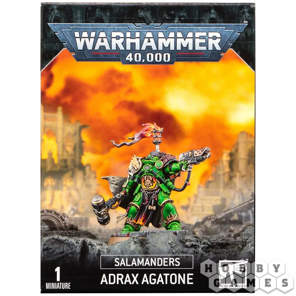 Адракс Агатон – это наковальня, об которую разбиваются враги Саламандр. Там, где он держит оборону или наступает на врага, боевые братья Саламандр начинают сражаться с непреодолимой решимостью. Арридианский плащ из шкуры дрейка защищает его от практически любого оружия, за исключением самого разрушительного. С помощью мастерски сделанного ручного огнемёта "Драккис" Адракс Агатон сжигает врагов, а тех кто осмелился подойти на расстояние удара, он разносит громоподобными ударами своего громового молота "Маллеус Ноктюм".