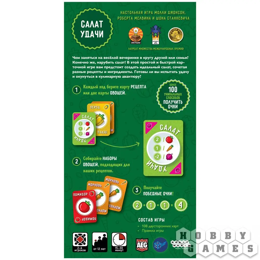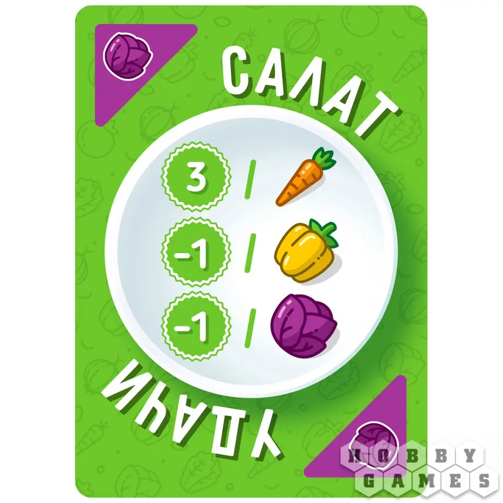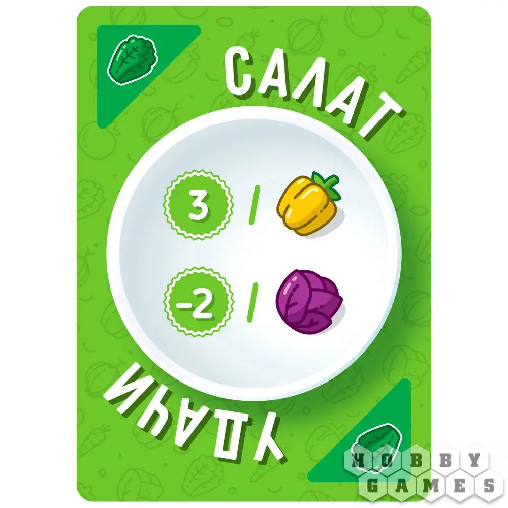 Но, конечно же, чтобы это стало настоящим развлечением, вам стоит перевести этот процесс в формат увлекательной, динамичной и очень простой в освоении настольной игры. Вам в руки попадут карты, с помощью которых вы сможете сделать свой собственный идеальный салат. Нужно лишь немного внимания: следите за раскрывающимися картами, подбирайте выгодные ингредиенты, сочетайте самые разнообразные рецепты, получая как можно больше очков за лучшие комбинации. Кулинария станет ещё интереснее, если вы готовы испытать свою удачу!