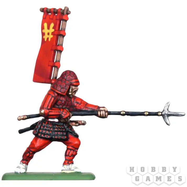 На поле боя самураи действовали в тесном взаимодействии с асигару – лёгкой пехотой, набранной из крестьян. Эти подвижные воины, защищённые лишь простыми доспехами, составляли основную массу войск. К середине XVI века их стали массово вооружать аркебузами, что кардинально изменило тактику японских армий. На спине каждого воина красовался герб их даймё.