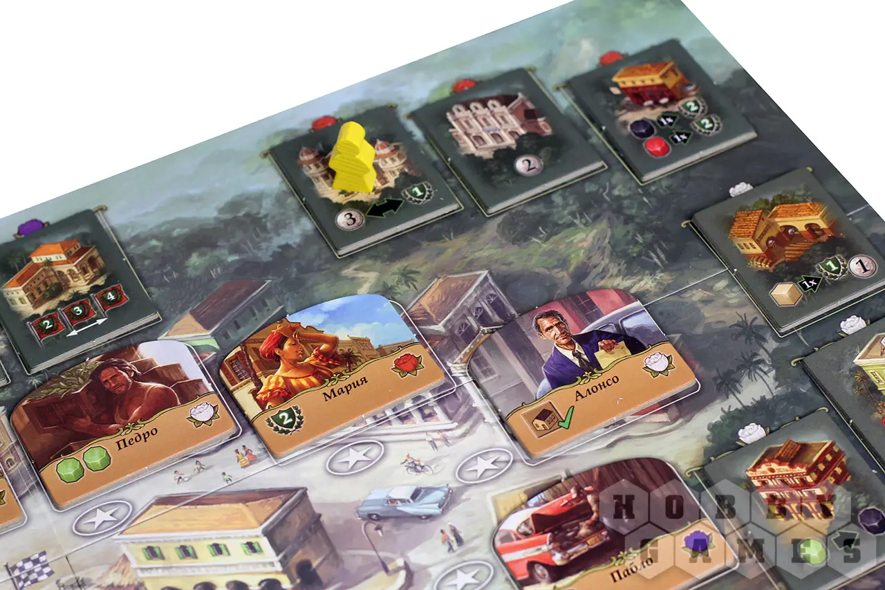 В начале игры, случайным образом формируется окружение – 9 местных кубинцев и 12 заведений: таким образом, игроки получают набор уникальных возможностей на каждую партию (получать табак, перерабатывать его в сигары, покупать Победные Очки и множество других). На протяжении игры, вам предстоит поставить товар на 7 кораблей, чей спрос также определяется волей случая. Игроки, путешествуя вместе на одном автомобиле, по-очереди предпринимают различные действия – выбирают путь движения, то есть решают воспользоваться услугами кубинцев или отвезти товар в порт. Побеждает самый хитрый и талантливый «брокер», сумевший доставить больше всех товара на корабли...