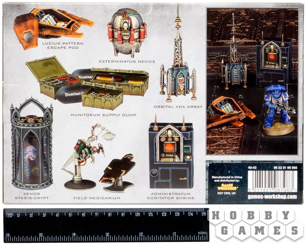 Этот набор декоративных миниатюр способен послужить как в качестве боевых целей для миссий, так и просто для украшения рабочего стола или диорам. Медицинский сервитор с операционным столом, капсула с головой генокрада внутри - все это добавит вашим играм атмосферы мрачного темного будущего и сделает их еще более захватывающими.