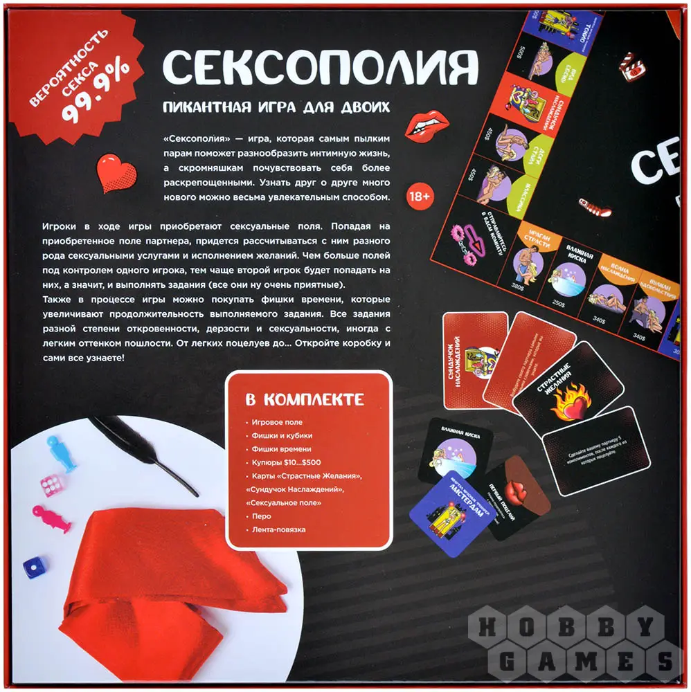 "Сексополия" – это откровенная игра для двоих, с помощью которой можно как разнообразить отношения самых пылких пар, так и помочь застенчивым дать волю своим эмоциям и стать чуточку раскрепощённее.