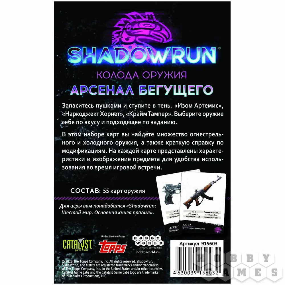 Любой бегущий – самурай или шаман, опытный вояка или уличный панк – прекрасно знает, что безотказная пушка может спасти твою жизнь. Когда ставки растут, а страсти накаляются, надеяться порой можно только на верный АК-97!Критически важно понимать, на что способно ваше оружие, и держать в голове его характеристики. К счастью, теперь тактические задачи станут значительно легче – в данной колоде карт содержится всё необходимое для жарких потасовок.