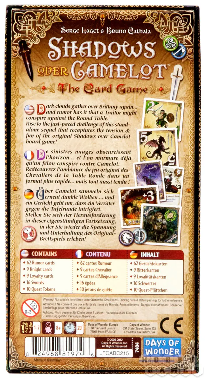 Чтобы развеять тени над Камелотом Вам придётся работать в команде со своими друзьями...Вы ведь доверяете своим друзьям, правда? Для победы придётся оставить личную выгоду в пользу командной игры. Каждому игроку нужно будет изрядно попотеть и пройти немало приключений, чтобы собрать 7 Белых Мечей, столь необходимых для Победы. И радость выигрыша и горечь поражения придётся разделить на всех...если конечно Вам не досталась карта Предателя! Тогда Ваши цель — плести интриги и строить козни своим приятелям за столом, а это поверьте намного сложнее и веселее!