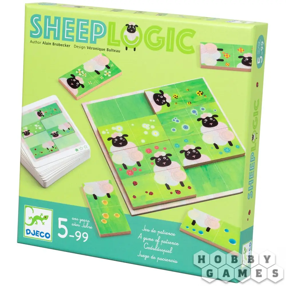 Sheep Logic – это увлекательная настольная игра для одного. Игровой комплект состоит из шаблона, десяти деревянных домино и карточек с заданиями. Задания есть простого, среднего и сложного уровня. Используя 8 из 10 домино нужно собрать картинку с задания. На каждой костяшке домино изображены части овечек и травка. Для каждого задания есть только одно верное решение. Прокачайте логику и пространственное мышление на овцах!