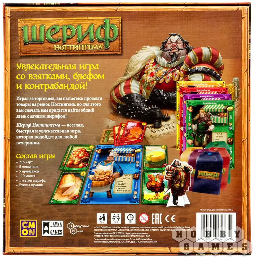 В настольной игре "Шериф Ноттингема" игрокам предстоит стать торговцами, которые пытаются провезти свои товары в город, также по кругу им придётся примерить на себя роль пресловутого шерифа. В процессе игры вам нужно будет давать и брать взятки, договариваться и блефовать друг с другом. Всё для того, чтобы доставить на городской рынок как можно больше своих товаров и стать в результате самым богатым торговцем.