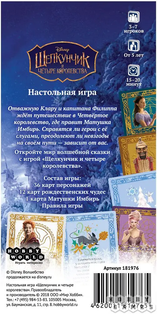 "Щелкунчик. Четыре королевства" – это простая рождественская игра для всей семьи! Она прекрасно подойдёт для игры с детьми и для спокойного досуга. Правила игры осваиваются буквально на лету. Игра наполнена праздничным настроением, знакомыми персонажами из диснеевской адаптации балета Петра Ильича Чайковского, волшебством и запоминающимся дизайном!