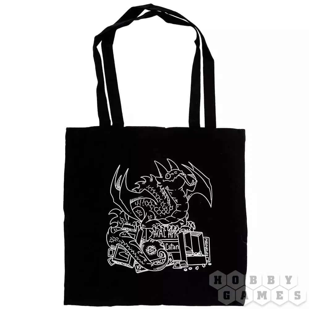 Чёрный цвет всегда в моде, а классный принт с гордо восседающим драконом, нанесённый с использованием шелкографии, завершает украшение этого аксессуара. Изготовлен шоппер из хлопка с добавлением синтетического волокна для большей прочности. Можете не сомневаться, этот красавец способен перенести в себе множество коробок!