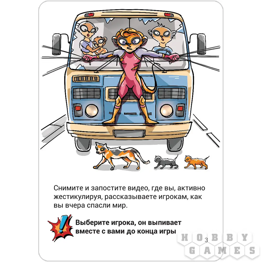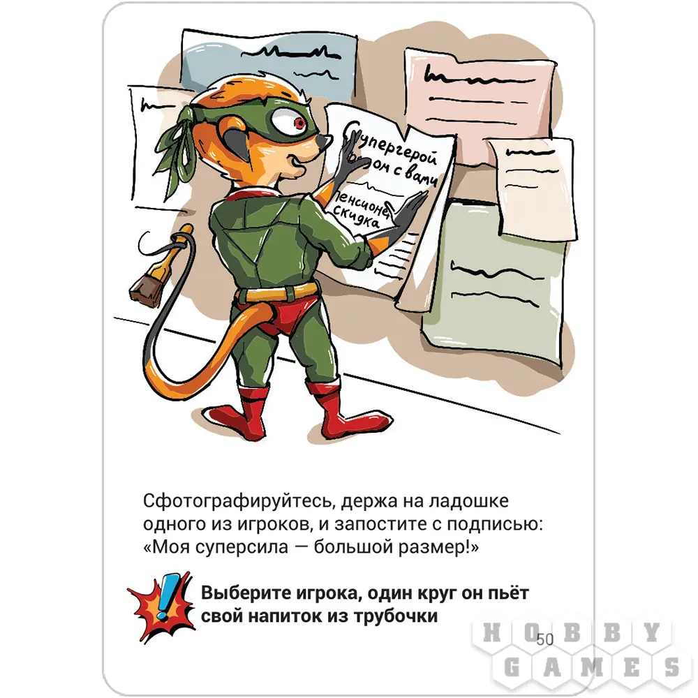 Играть в "Шот Горячительный" отнюдь не сложно, но необычайно весело! Игроки по очереди совершают ходы, вытягивая карты: на каждой описаны определённые супергеройские задания. Придётся снимать видео, танцевать и совершать всевозможные смешные действия – но делать это не обязательно. Если вы не хотите выполнять задание, вы можете выпить и передать карту игроку слева. Он, в свою очередь, тоже должен решить, выполнить задание или передать карту дальше. Карта будет переходить по кругу до тех пор, пока кто-то не выполнит её условие или пока она не вернётся к вам.