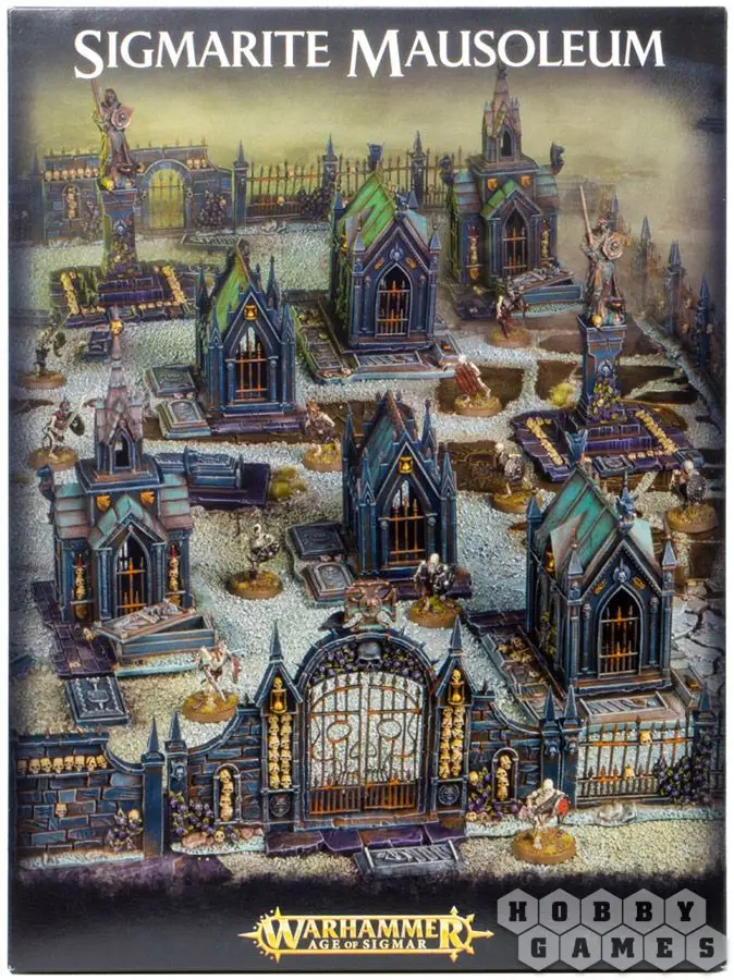 Сигмаритский Мавзолей - коллекция мрачных и величественных гробниц, могил, статуй, ворот и стен. Этот набор добавит вашим играм мрачности и таинственности, а также прекрасно подойдет для тематических сражений с участием нежити.