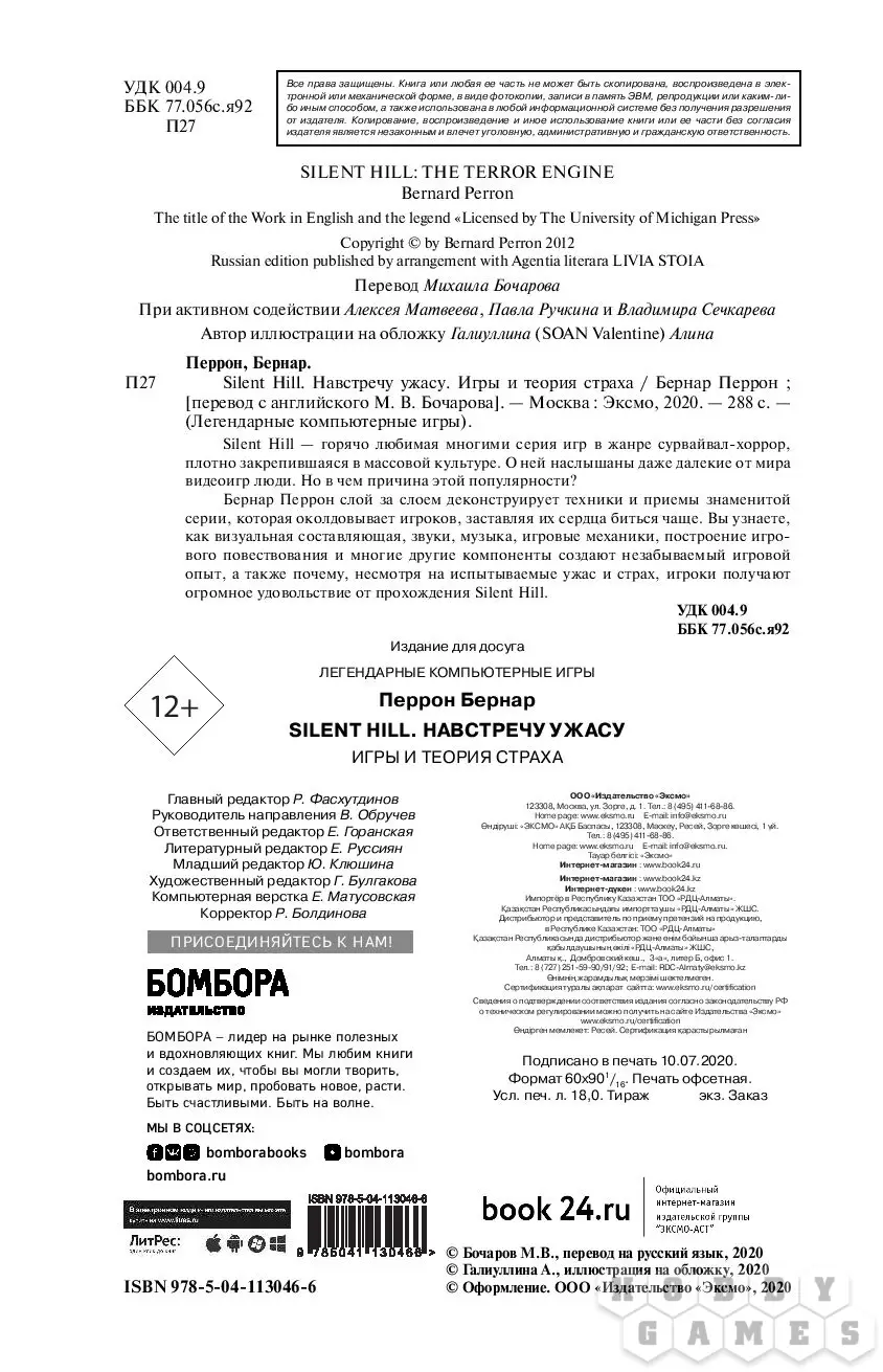 Silent Hill - горячо любимая многими серия игр в жанре сурвайвал-хоррор, плотно закрепившаяся в массовой культуре. О ней наслышаны даже далекие от мира видеоигр люди. Но в чем причина этой популярности? Бернар Перрон слой за слоем деконструирует техники и приемы знаменитой серии, которая околдовывает игроков, заставляя их сердца биться чаще. Вы узнаете, как визуальная составляющая, звуки, музыка, игровые механики, построение игрового повествования и многие другие компоненты создают незабываемый игровой опыт, а также почему, несмотря на испытываемые ужас и страх, игроки получают огромное удовольствие от прохождения Silent Hill. Ужас притягателен. Страх захватывает, опутывает, околдовывает. Для наиболее полного погружения в мир ужаса видеоигры подходят лучше всего. Игрок не только пассивно переживает пугающие события, но и активно взаимодействуют с ними, уклоняясь, противостоя или просто направляясь навстречу неизбежному.