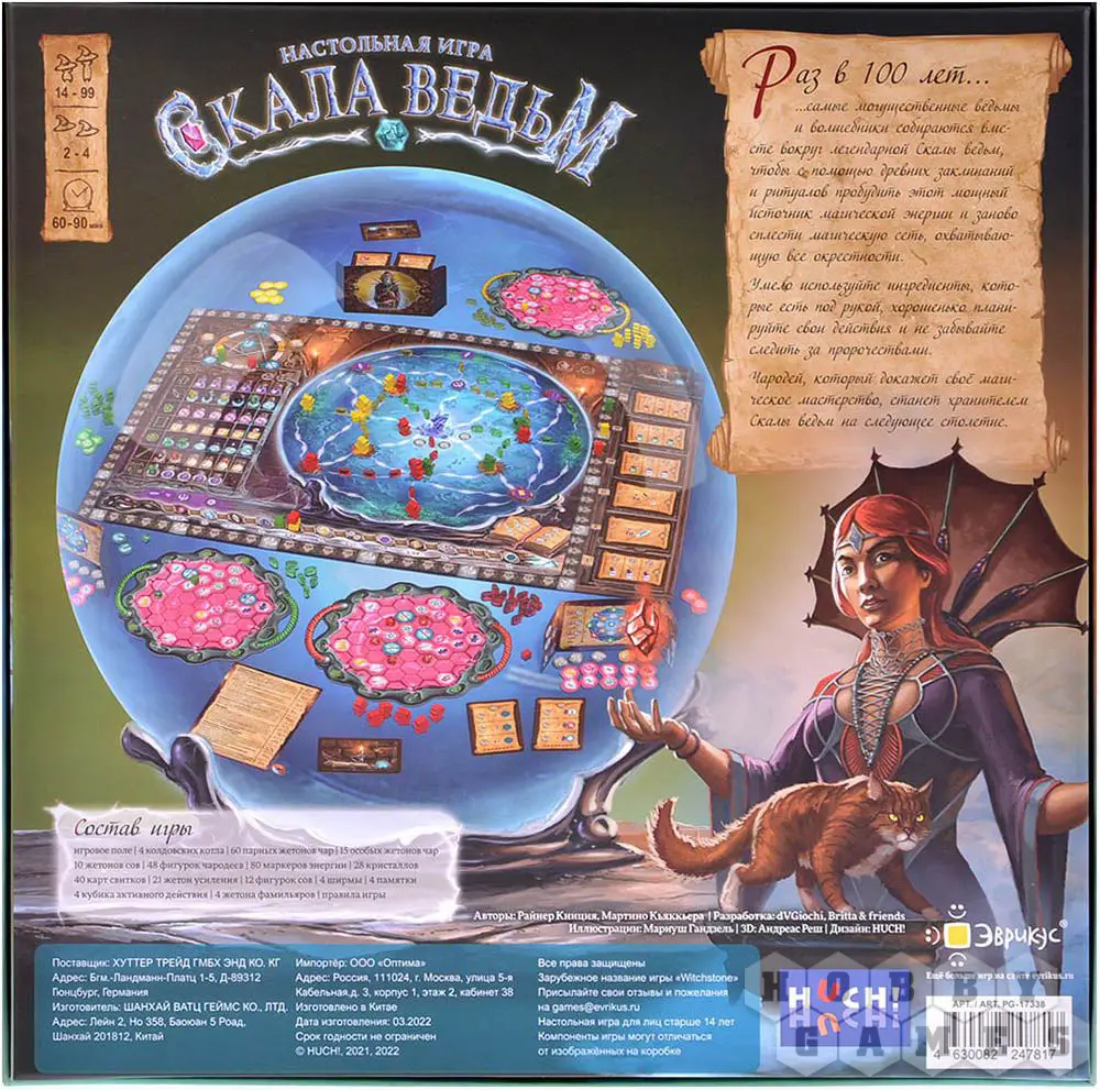 В этой настольной игре вам предстоит стать одним из великих магов, который удостоен чести стать участником ритуала по пробуждению могущественной магической силы. В течение одиннадцати ходов вы будете обращаться к силе пентаграмм, использовать волшебную палочку, варить зелья и произносить заклинания. Каждое ваше действие может запустить цепочку других действий, комбинация которых принесёт вам победные очки. А они в этой игре очень важны, поскольку отражают ваше влияние и успех в проводимом ритуале. Тот маг, что проявит себя больше остальных и докажет своё мастерство, не просто победит, а станет хранителем Скалы ведьм! До следующего собрания, разумеется...