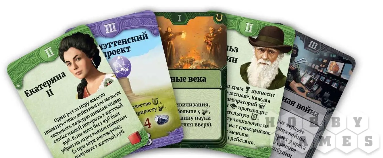 Сквозь Века – одна из самых разнообразных и проработанных стратегий, прочно укрепившаяся в ТОП-5 лучших игр мира по версии BoardGameGeek. Неудивительно, что разработка дополнения к ней заняла несколько лет – автор игры Владя Хватил бесконечно тестировал, балансировал и снова тестировал новые карты, добиваясь идеальных комбинаций.