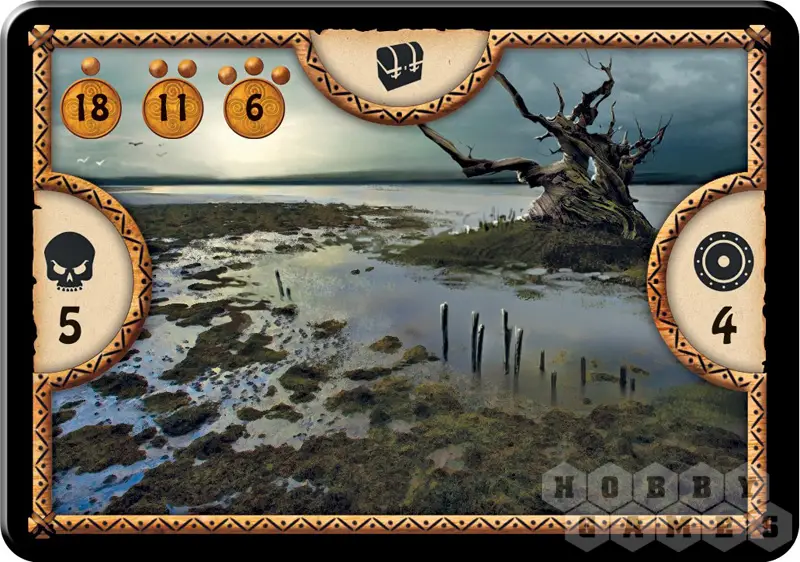 Таким образом игроки заполняют области героями и супостатами, попутно применяя их специальные свойства до тех пор, пока супостатов не станет максимальное количество в области. В этом случае происходит битва – подсчитывается общая сила злодеев и героев и определяется победитель. В зависимости от меры участия в победе игроки получают очки славы, а сокровища забирает себе первый в битве игрок (сокровища дают очки славы). После битва герои возвращаются в руки владельцев, супостаты уходят в сброс, а карта области переворачивается (она двухсторонняя) и получает свои сокровища. Если же супостаты победят, то с карты области уходят все, однако она не перевернется и получит еще карт сокровищ!