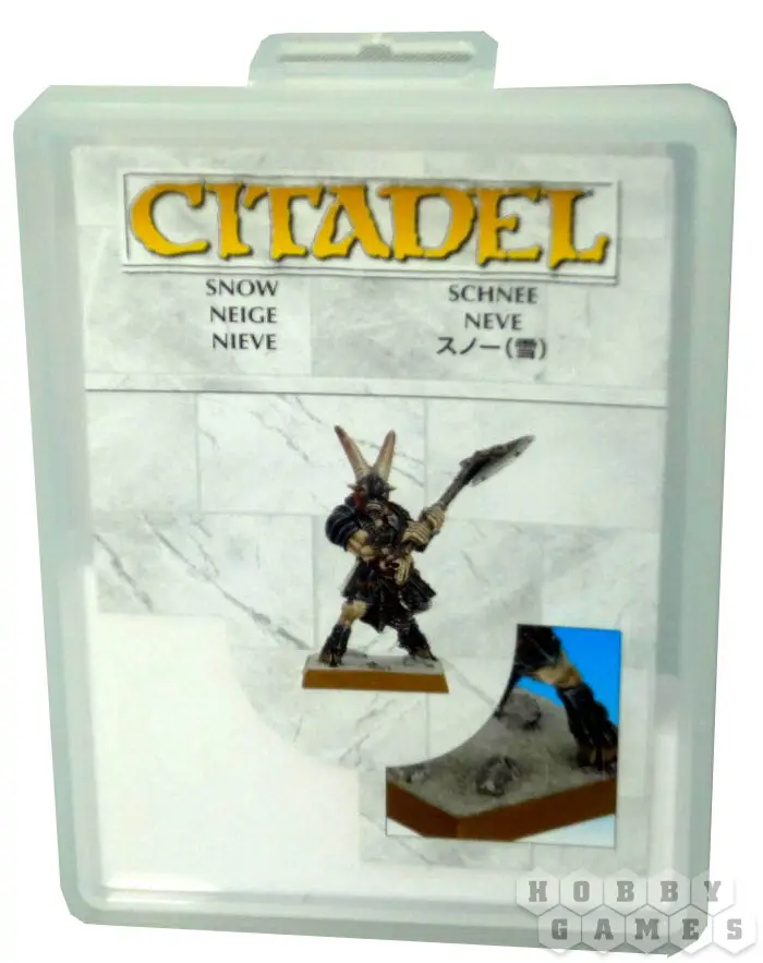 Многие игроки используют такие наборы, чтобы украсить подставки своих моделей. Покрасите подставку, и когда краска высохнет, просто нанесите клей ПВА на неё. Далее сверху ПВА нанесите слой снега из этого набора. Затем стряхните с подставки остатки травы.