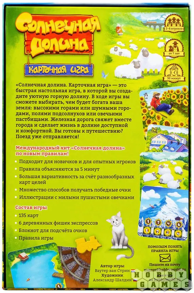 "Солнечная долина. Карточная игра" представляет собой быструю, динамичную и яркую настольную игру для компании до шести человек. Игра проста в освоении, поэтому прекрасно подойдет и для семейного досуга, а сам игровой процесс интуитивен и очень красив.