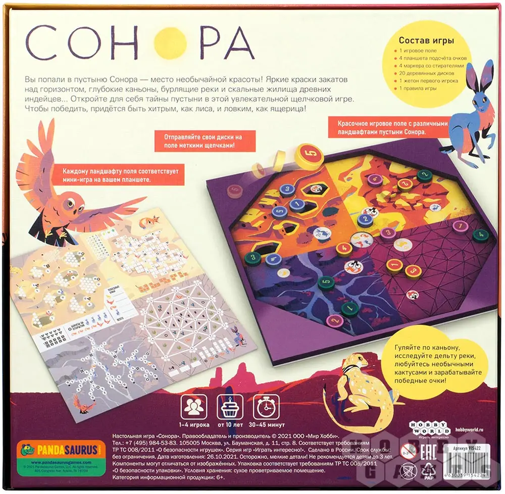 Каждый тип ландшафта привлекает своей, особенной красотой. Пустыня – не исключение! Кто сказал, что пустыни безжизненны? Они полны жизни! Проворные хитроумные фенеки, зайцы, греющиеся на руинах разноцветные ящерицы и совы, которых не увидишь днём – но ни одна мышка не проскочит мимо них ночью... Откройте для себя прекрасную пустыню Сонору, ловко запуская деревянные диски в нужные области поля.