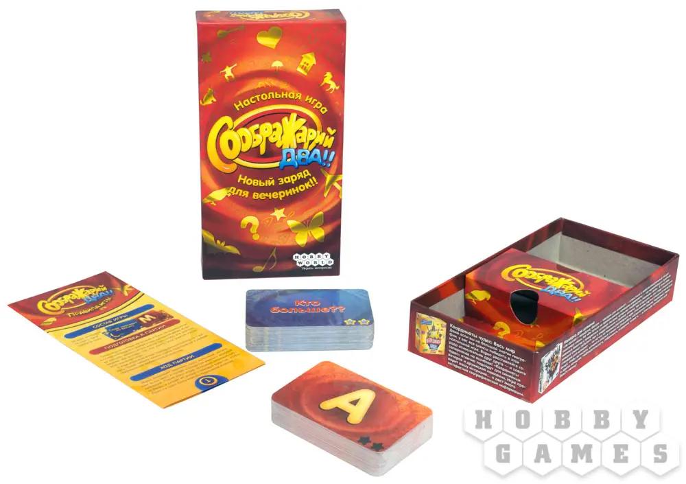 "Соображарий Два!!" – это новая часть знаменитой компанейской игры, скрасившей множество посиделок и вечеринок. Внутри - новые, яркие и интересные задания, которые заставят призадуматься - но сделать это быстро!