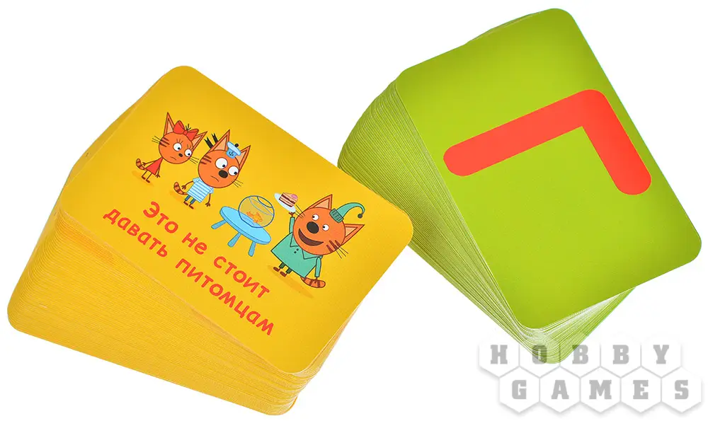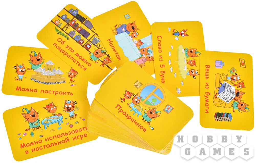 Участник игры открывает карту, читает, что на ней, после чего размещает рядышком с колодой заданий. Далее он таким же образом демонстрирует карту буквы, чтобы все могли увидеть её. Ну а теперь, когда условия для слова заданы, каждый котёнок участник спешит назвать слово, которое подходит открытому заданию и начинается на открытую букву. Тот, кто оказался проворнее остальных и первым назовёт подходящее слово, забирает себе карту задания. Это значит, что у этого шустрика есть честно полученное победное очко, с чем его и поздравляем.