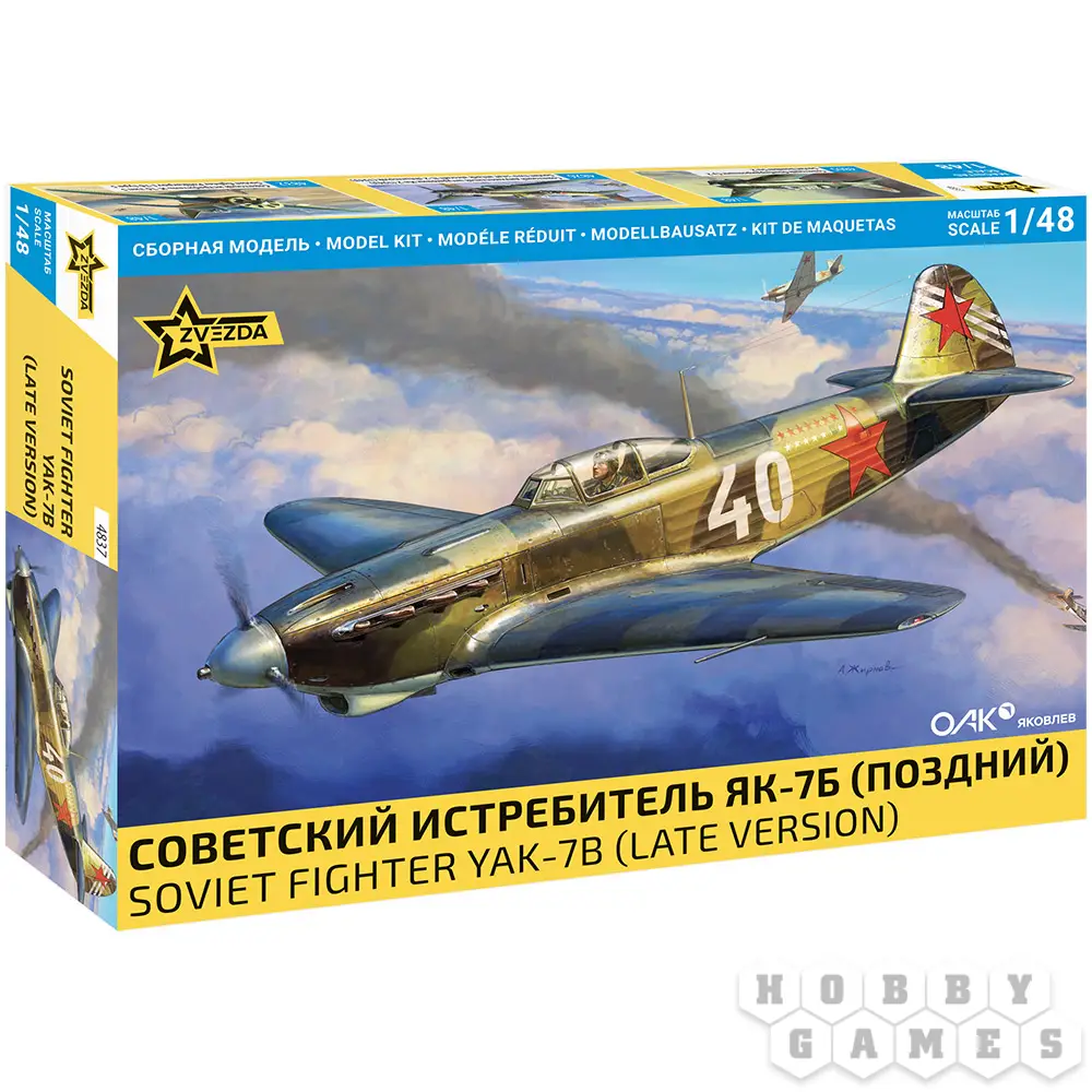 Советский истребитель Як-7Б представляет собой улучшенную модификацию базовой модели Як-7. В процессе модернизации самолёт оснастили более мощным двигателем М-105ПФ, развивающим 1180 лошадиных силы. Кроме того, весной 1943 года машина получила каплевидный фонарь кабины, что значительно улучшило обзор для пилота, и пониженный гаргрот. Вместо синхронных пулемётов ШКАС винтовочного калибра на истребителе установили крупнокалиберные 12,7-мм пулемёты УБС.