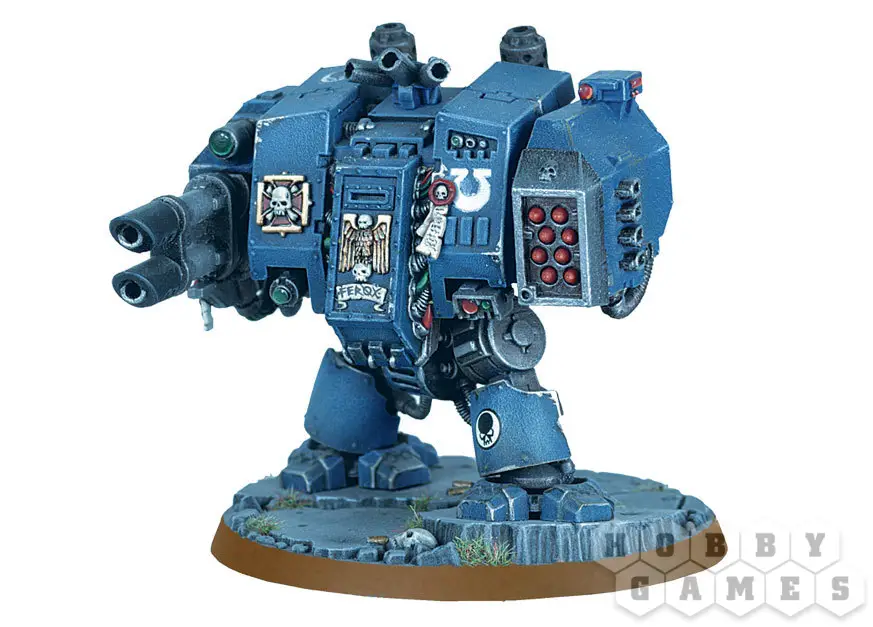 "Дредноут" Космодесанта Втрое выше человеческого роста, эта боевая машина одинаково смертоносна на дистанции и в ближнем бою. "Дредноуты" считаются ценными реликвиями в каждом капитуле, так что пробуждают их только в случае крайней необходимости. Внутри каждого "дредноута" почивает могучий, но смертельно раненый в одной из битв прошлого, герой Космического десанта. Только погребение в системе "дредноута" удерживает героя на этом свете.