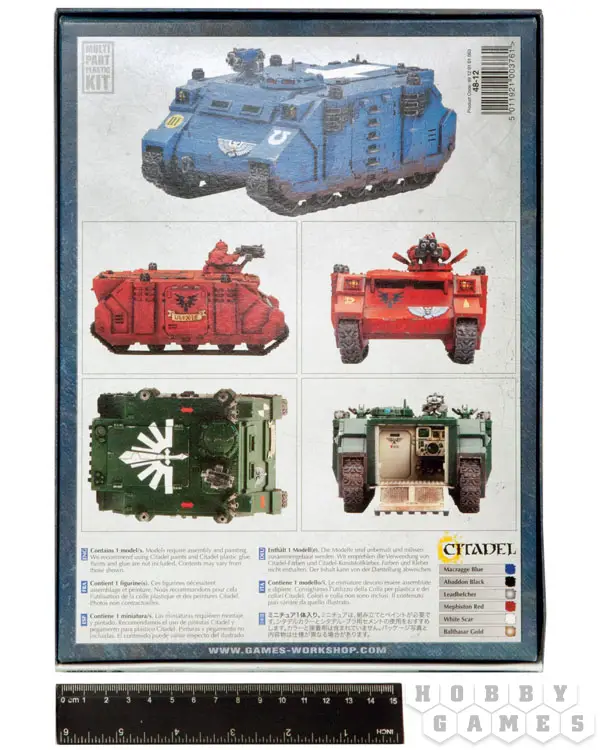 БТР «Носорог» основан на СШК-проекте с под названием «Гусеничная Разведывательная и Многоцелевая Защитная машина», разработанным еще в Темную Эру Технологий. Экипаж — 1 водитель. Стандартное вооружение — 1 штормболтер.