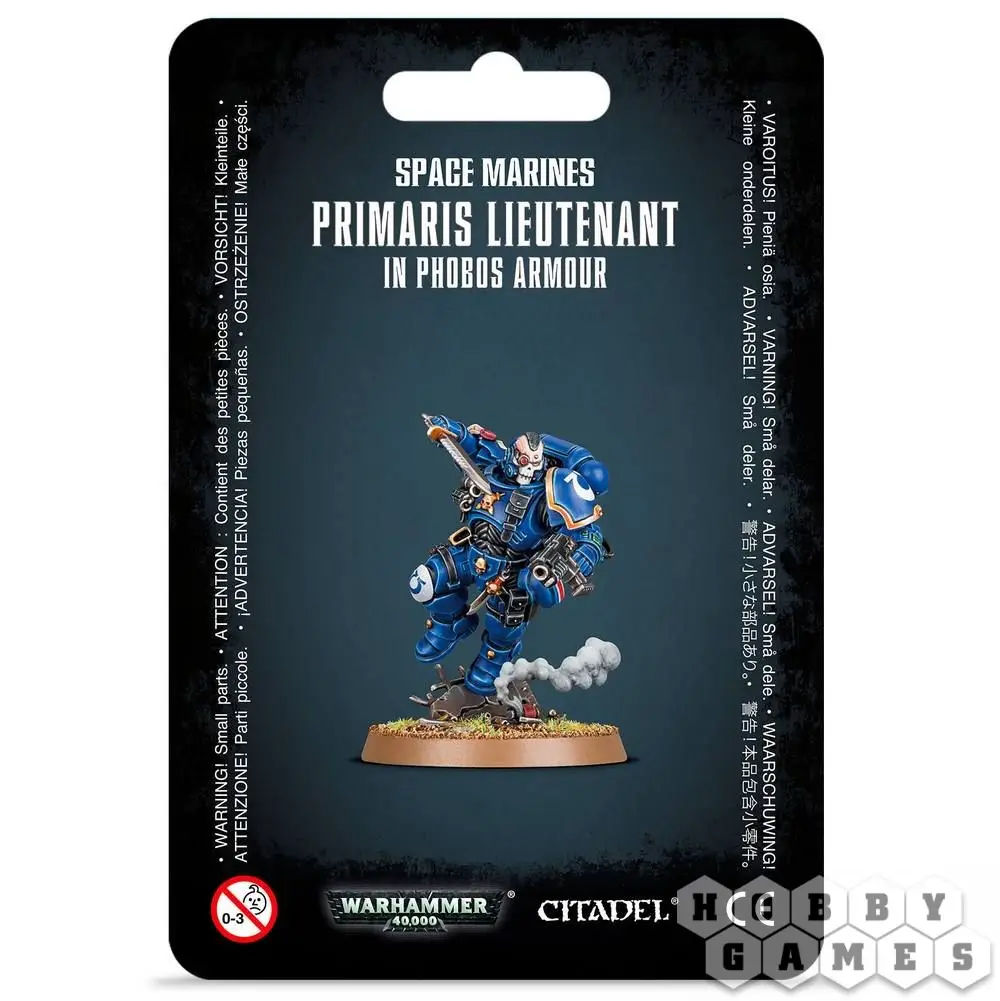 Примарис Лейтенант в броне "Фобос" (Primaris Lieutenant in Phobos Armour) динамично бежит по полю битвы на полной скорости навстречу врагу. Его движения быстры и скрыты под дымовой завесой. Он является одним из вариантов командования для армии Космического Десанта (Space marines), а также Кровавых Ангелов (Blood Angels), Тёмных Ангелов (Dark Angels) и даже Космических Волков (Space Wolves) у которых он выполняет роль Примарис Боевого Лидера (Primaris Battle Leader). Как высококвалифицированный воин из числа Головорезов (Reivers) он способен разорвать строй врага с помощью тяжёлого болт-пистолета и боевого ножа.