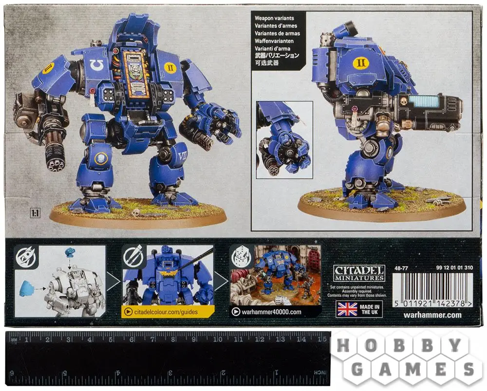 В данном наборе вы найдёте компоненты для сборки "Редемптора". Эта модель выше и шире дредноутов старого типа, а Космодесантников Примарис (Primaris Space Marines) и вовсе превосходит ростом вдвое. Его внушительный вид отлично сочетается с боевой мощью, которой "Редемптор" отличается на поле боя! В качестве оружия для правой руки вы можете выбрать гатлинг-пушку или плазменный испепелитель, а для левой – кулак с тяжёлым огнемётом или гатлинг-пушкой. В его корпус также могут быть встроены два гранатомёта или штормовых болтера, а также ракетная установка земля-воздух типа "Икар".