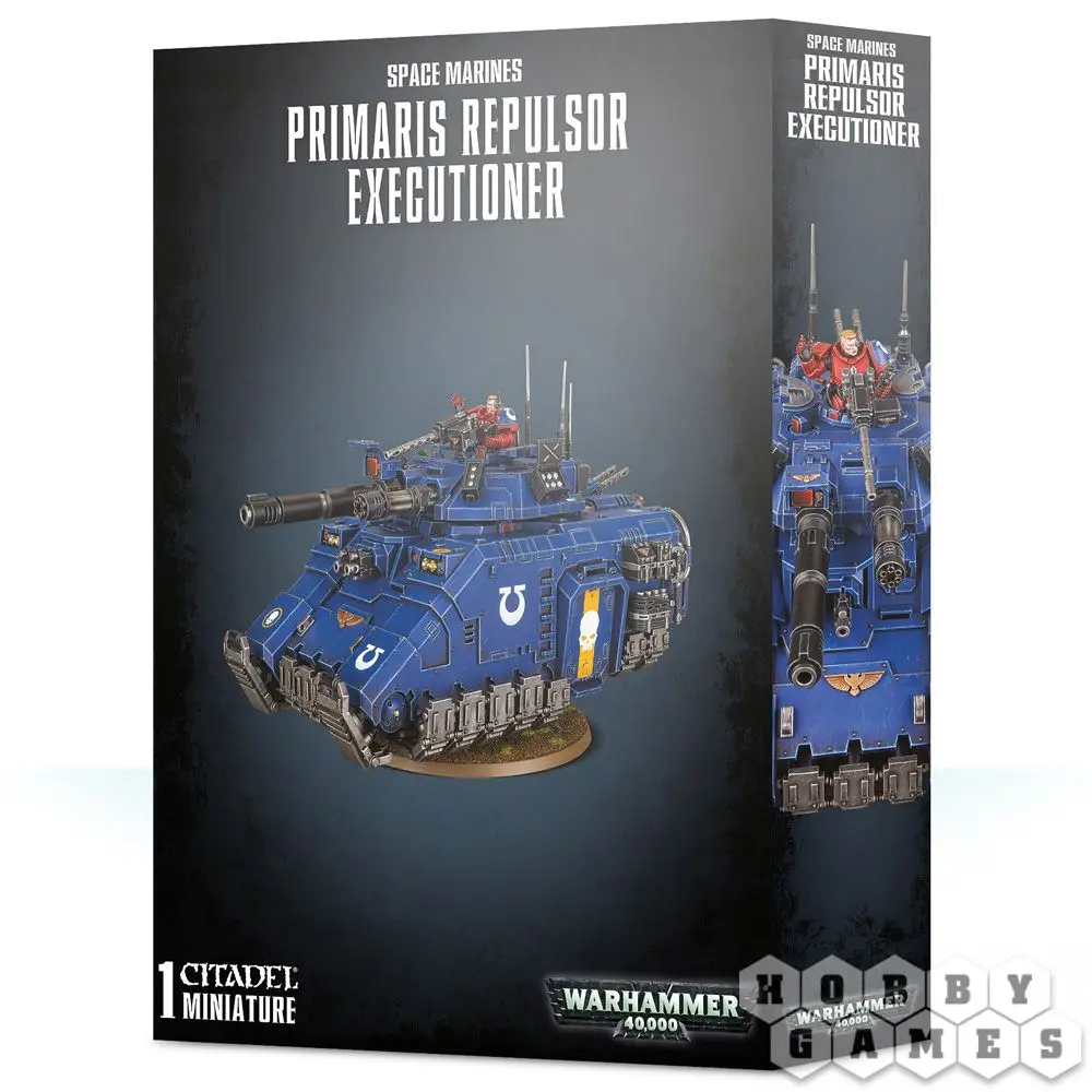 "Репульсор Палач" – самый тяжеловооружённый боевой танк, доступный Адептус Астартес. В качестве основного оружия на башне можно выбрать смертоносный макроплазменный выжигатель или тяжёлый разрушительный лазер – при поддержке тяжёлой наступательной гатлинг-пушки. Добавьте к этому два гранатомёта "Крак-шторм", два штурмовых болтера, спаренный шквальный тяжёлый стаббер, спаренный тяжёлый болтер на корпусе и шквальный тяжёлый стаббер сверху башни. Разве после этого списка вашему "Репульсору Палачу" нужно что-то ещё из огневой мощи? Но всё же вы можете добавить набор комплексов активной защиты и даже ракетный контейнер "Икар", в качестве дополнительной защиты от низколетящих целей.