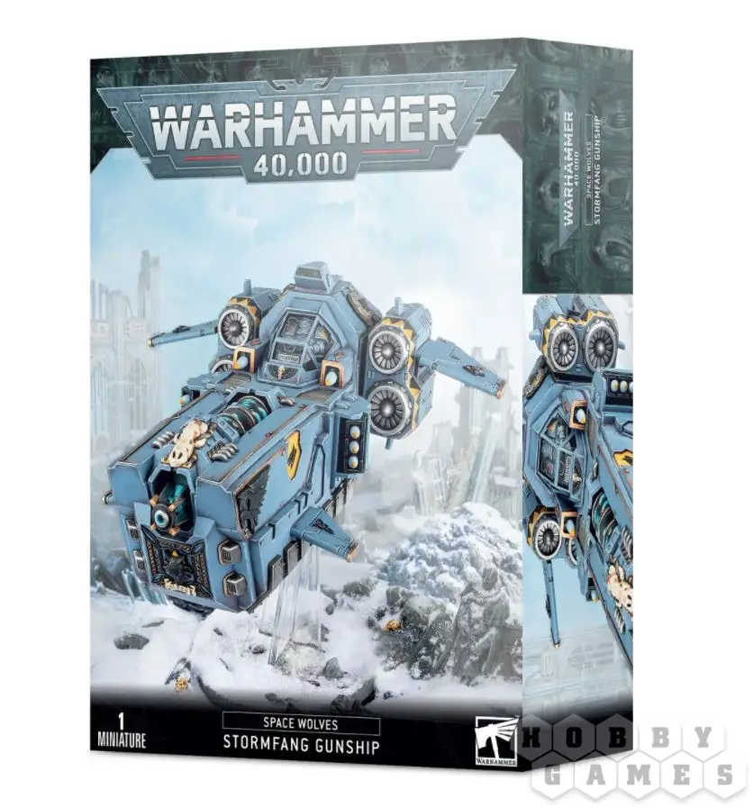 Данный набор позволяет собрать из нескольких пластиковых деталей один Stormfang Gunship, оснащённый Helfrost Destructor – громадной пушкой, способной моментально охладить пыл противника до абсолютного нуля! Эта пушка огромна и идёт по всей длине фюзеляжа. Борта, по вашему выбору, могут быть укомплектованы спаренными тяжёлыми болтерами, ракетами Skyhammer или спаренными мультимельтами. На корпус можно либо закрепить две ракеты Stormstrike, либо заменить их спаренной лазпушкой. В задней части корпуса находится транспортный отсек, который позволяет перевозить аж до шести Космических Волков!