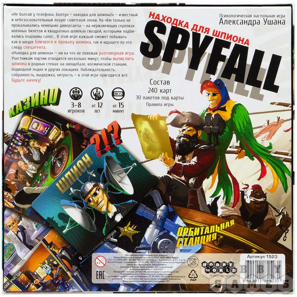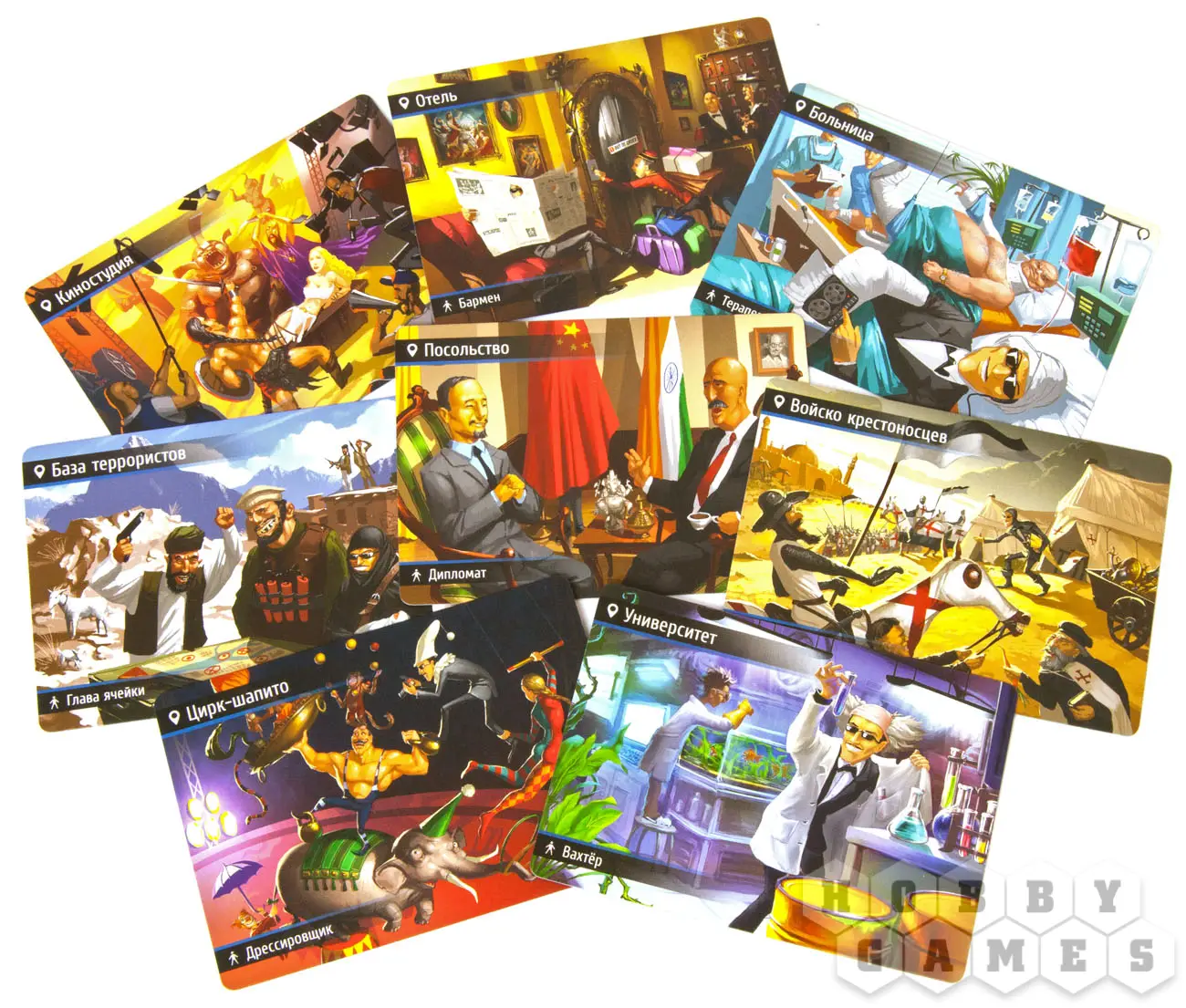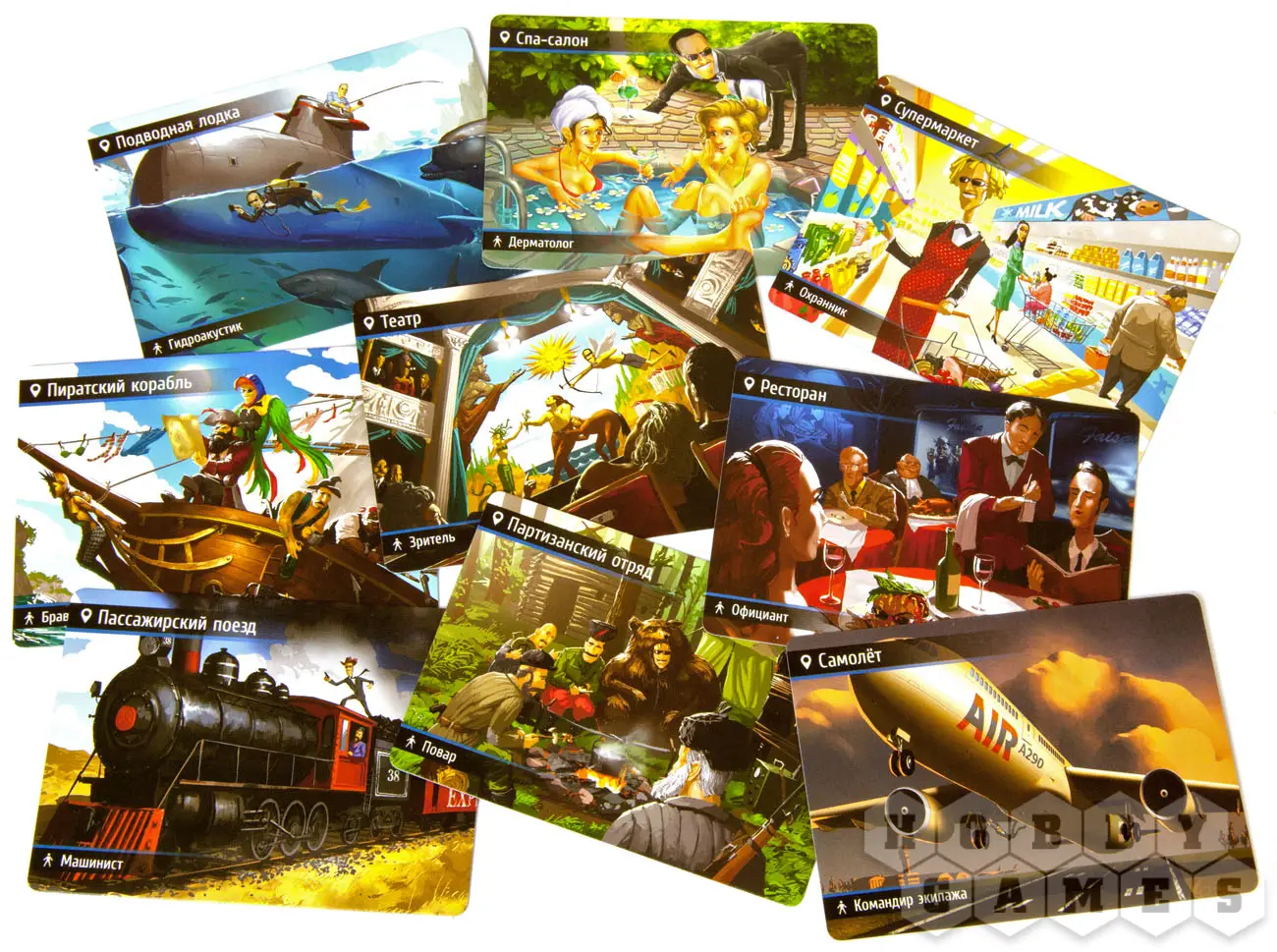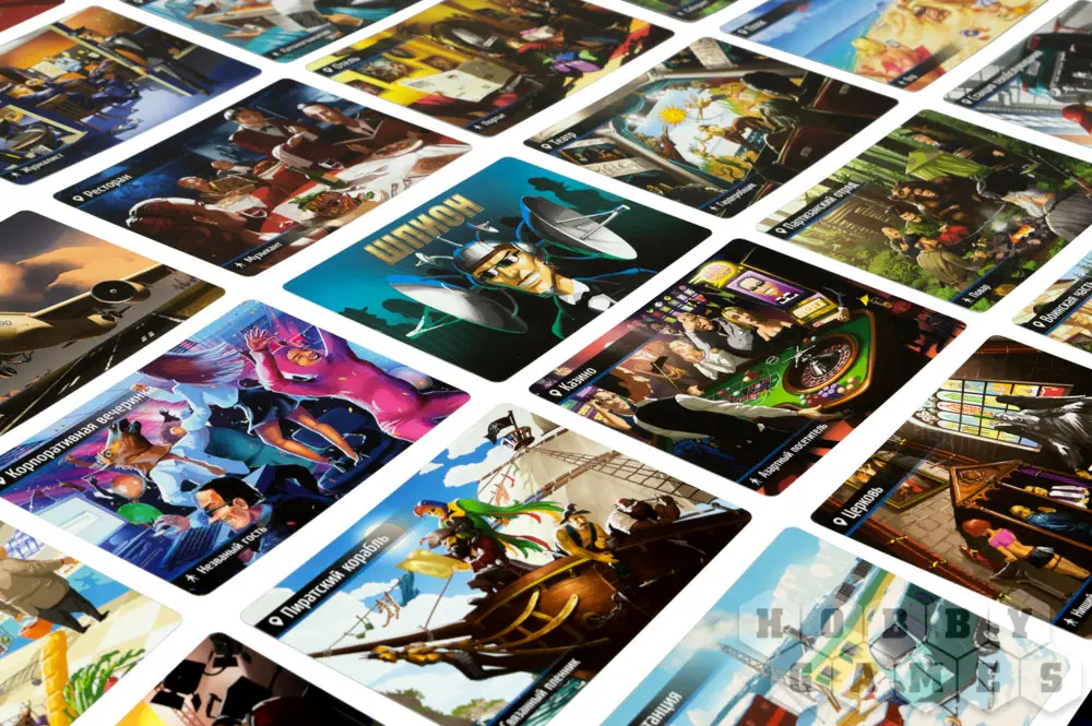 Шпион может остановить игру и назвать текущую локацию – если угадал, то победа за ним