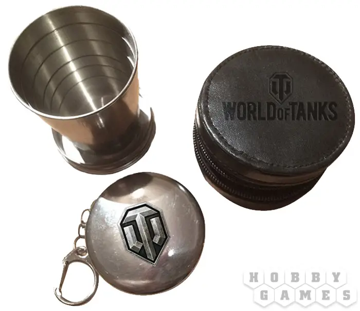 Металлический складывающийся стакан с крышкой, на которую методом лазерной гравировки нанесён логотип World of Tanks. Очень удобная и практичная вещь в походе, на рыбалке или просто на дачном пикнике в шезлонге у мангала.