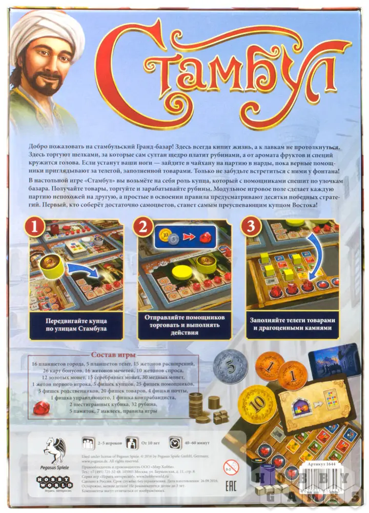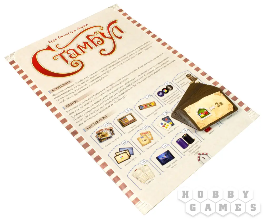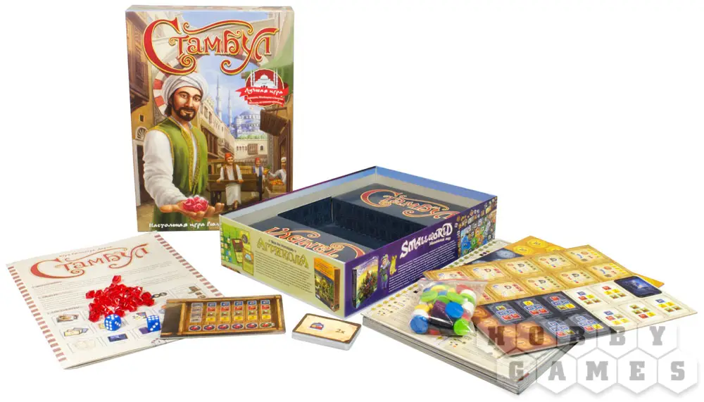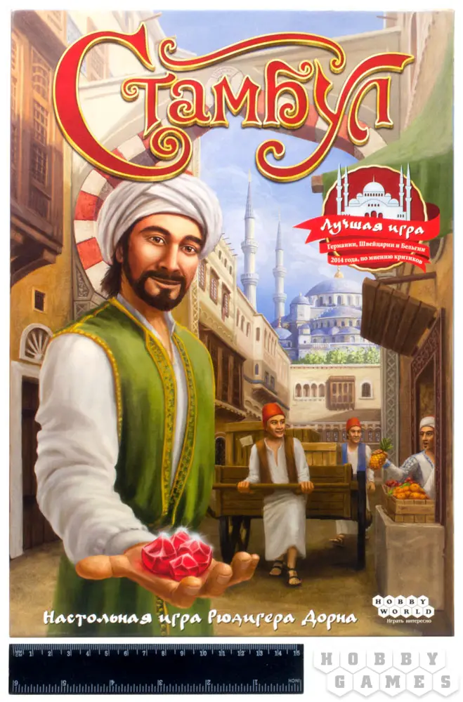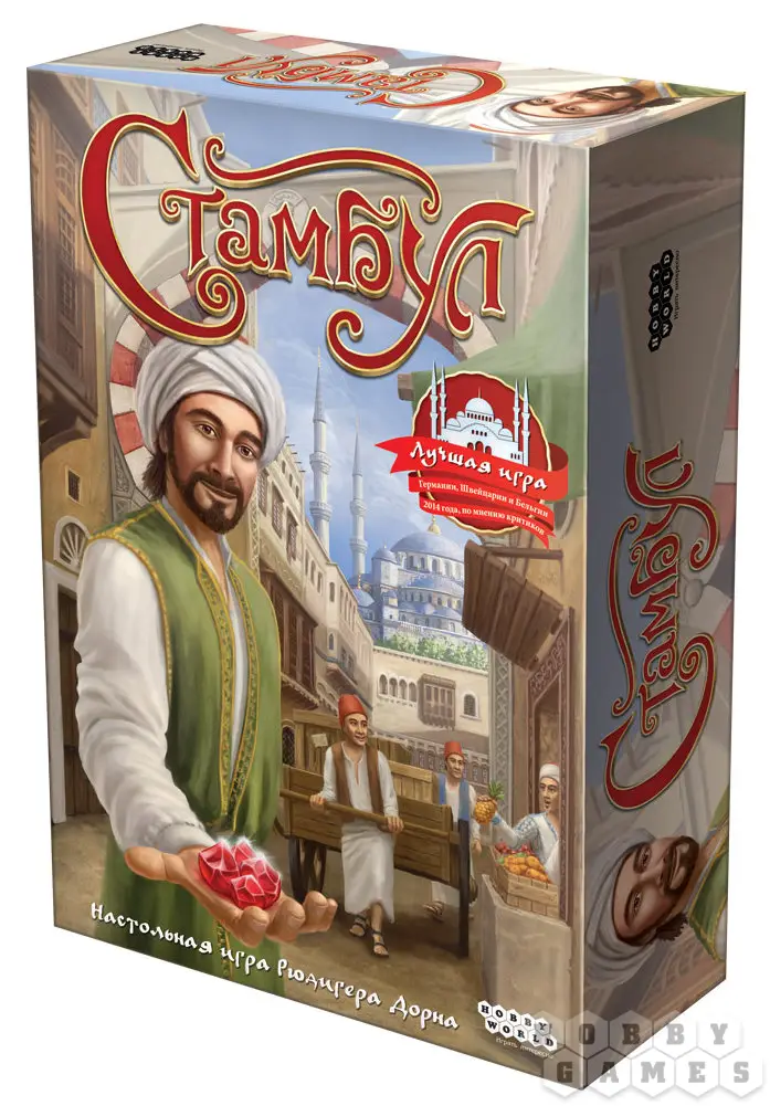 В настольной игре «Стамбул» вы возьмёте на себя роль купца, который с помощниками спешит по улочкам базара. Получайте товары, торгуйте и зарабатывайте рубины. Модульное игровое поле сделает каждую партию непохожей на другую, а простые в освоении правила предусматривают десятки победных стратегий. Первый, кто соберёт достаточно самоцветов, станет самым преуспевающим купцом Востока!