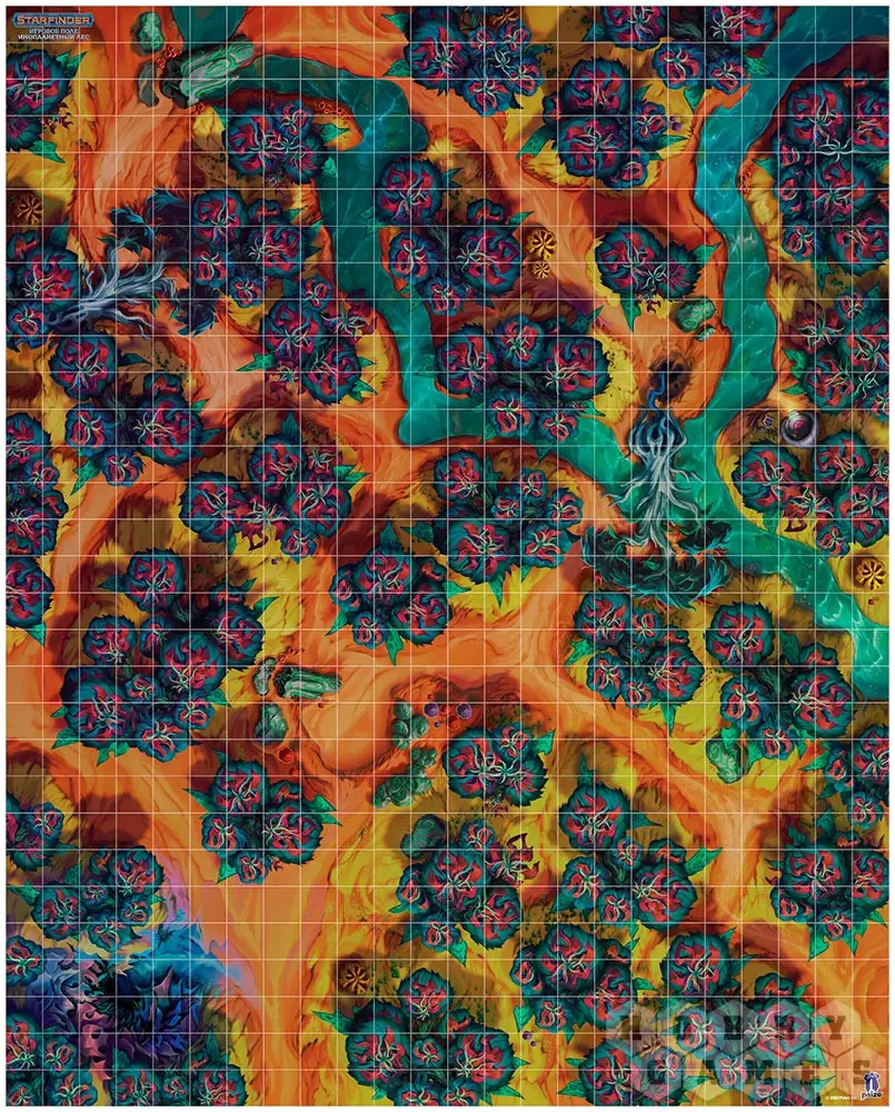 Данное двухстороннее игровое поле "Инопланетный лес" предусмотрено для игры в настольную ролевую игру Starfinder. Однако ничто и никто вам не запрещает использовать её вместе с другими игровыми системами! Одна сторона поля являет вам извилистые тропки, пролегающие сквозь густой лес, а другая – гигантские деревья величественной первобытной чащи.