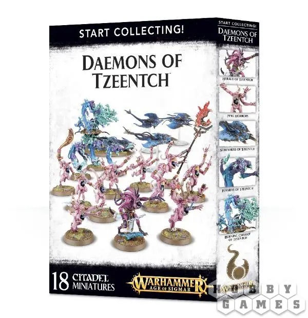 Этот ценный набор содержит коллекцию фантастических миниатюр Демонов Тзинча, которые можно собрать и сразу использовать в играх серии Warhammer Age от Sigmar и Warhammer 40 000! Вы получите Пылающую Колесницу Тзинча (с возможностью собрать пешего Герольда Тзинча), 3 Огневика Тзинча, 3 Крикуна Тзинча и 10 Розовых Ужасов.