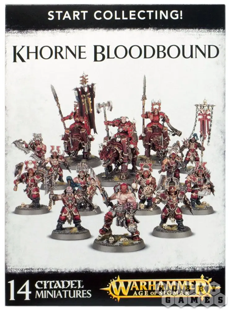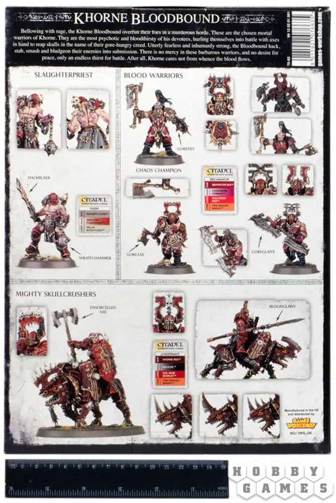 Кровожадные служители Кхорна, Повелителя Битв, Помазанники Крови - жестокие убийцы и мясники. Как багровый ураган они проносятся по Царствам Смертных, уничтожая все и всех на своем пути. Они отмечены руной своего воинственного божества и наделены его мощью и яростью - мало кто может встать у них на пути и остаться в живых!
