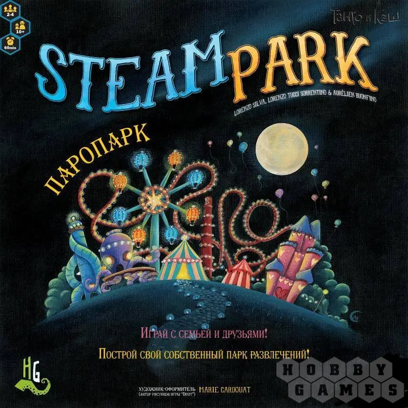 Steam Park — простая в освоении игра, в которой игрокам предлагают посоревноваться в том, кому удастся построить лучший (и самый прибыльный) фантастический парк аттракционов. Правилами предусмотрено два уровня сложности — для начинающих игроков и стратегический, для тех, кто предпочитает решать более интересные задачи. Конечно же, игроки строят новые аттракционы, чтобы привлечь как можно больше посетителей, но этим всё не ограничивается: игрокам также нужно умело управлять своими сотрудниками, вкладывать деньги в рекламу, чтобы привлекать новых посетителей, а также бороться с загрязнением парка.