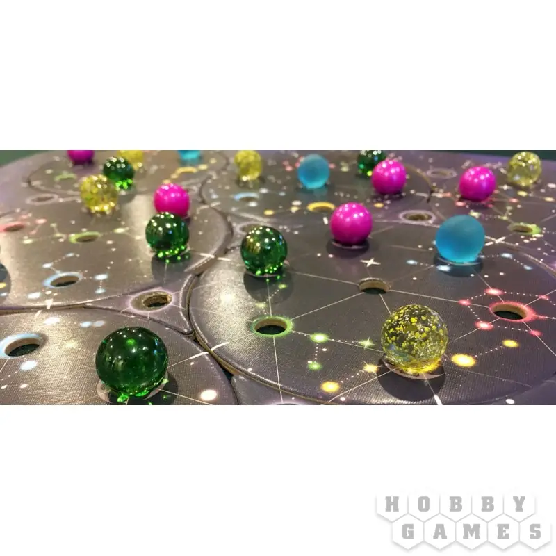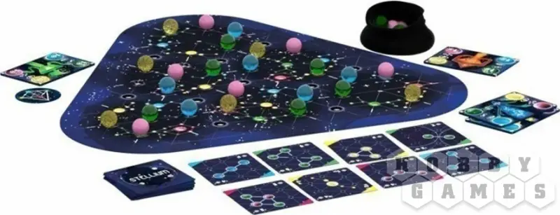 Игрокам предстоит по очереди вытаскивать из мешочка небесные тела (шарики) и размещать их на игровом поле. Каждое небесное тело имеет своё особое свойство, которое придётся использовать для выполнения того или иного задания. Именно выполненные миссии и будут приносить победные очки. А чтобы свести случайность к минимуму, вы сможете тактильно определять какое именно небесное тело вы вытягиваете...
