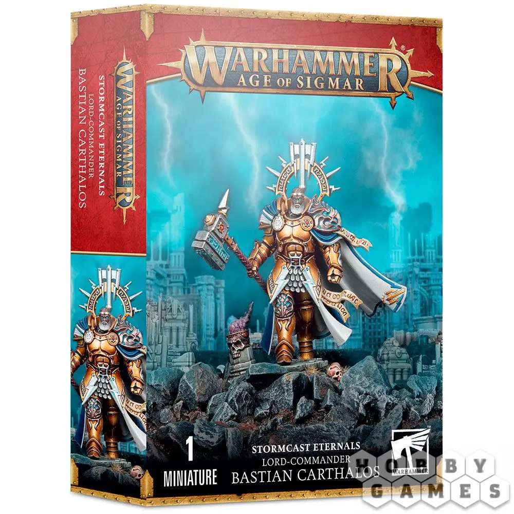 В Грозовом Воинстве (Stormhost) нет более высокой должности, чем Лорд-Командир (Lord-Commander). Среди Молотов Зигмара (Hammers of Sigmar) эту позицию занимает могущественный Бастиан Карфалос (Bastian Carthalos). Перекованный с помощью девятого Великого Разряда, Скьордамара, он представляет из себя истинного мастера тактики и боя. По распоряжению Зигмара Карфалос наблюдает за многочисленными походами Грозорождённых Вечных (Stormcast Eternals). В схватке же он умело орудует легендарным молотом Ускаваром, попутно отдавая приказы и вызывая врагов на бой громогласным кличем.