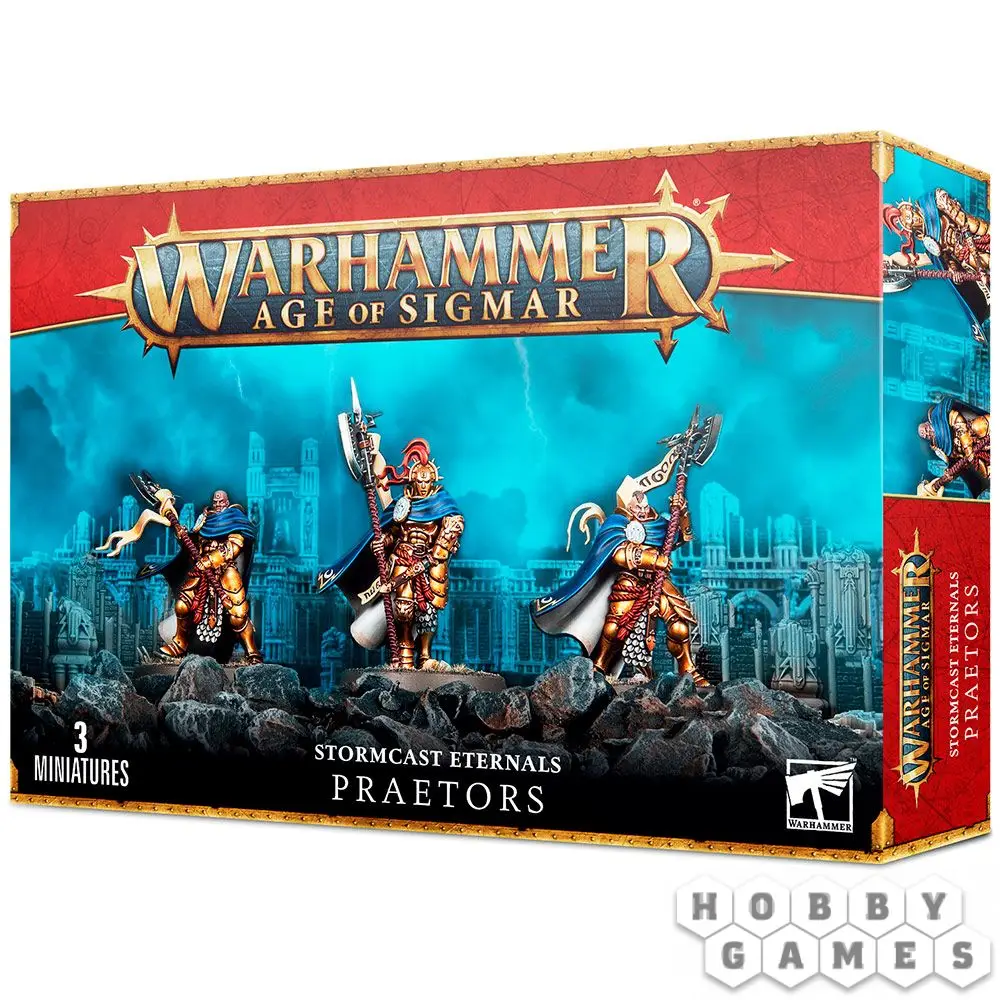 В наборе вы найдёте 29 компонентов, необходимых для сборки трёх Преторов с алебардами. Они облачены в броню “Раскат грома” и широкие плащи, а также могут быть собраны как в шлемах, так и без них. Одного из бойцов вы можете собрать в качестве Высшего Претора (Praetor-Prime). В комплект включены три 40-миллиметровые круглые подставки.
