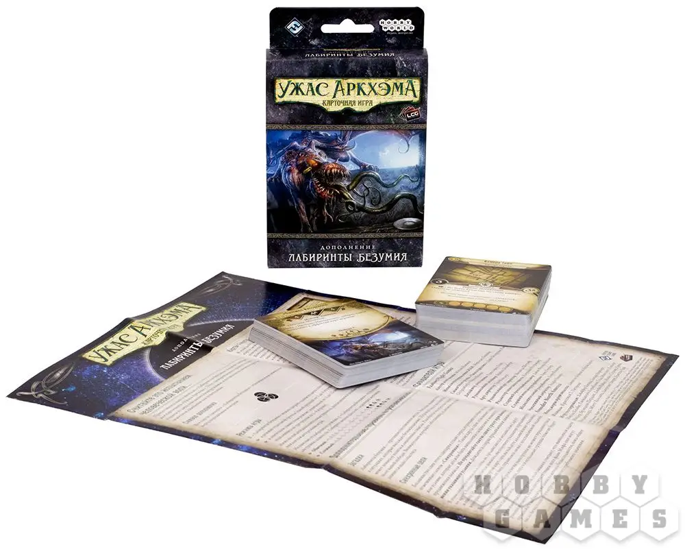 Коварный гений для своих дьявольских планов похитил три группы сыщиков. Смогут ли они противостоять натиску злодея и все вместе выбраться из заброшенного склада? Приготовьтесь найти выход из "Лабиринтов безумия" в новом сценарии для карточного "Ужаса Аркхэма". Этот сценарий можно пройти в режиме отдельной группы (одной группой от 1 до 4 игроков) или в эпическом совместном режиме (компанией от 3 до 12 человек, поделившись на три группы по 1–4 игрока), и его нельзя включить в другую сюжетную кампанию как ответвление.