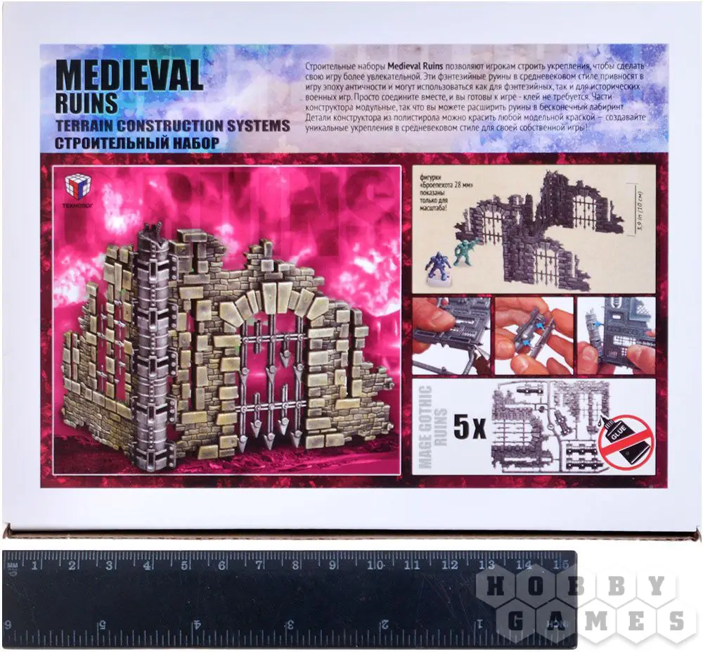 Строительный набор от компании "Технолог" позволит вам собрать модульный ландшафт, что отлично подойдёт для варгеймов и настольных ролевых игр. Комплект включает 5 литников, с помощью которых вы сможете соорудить конструкции из стен и колонн различной формы.