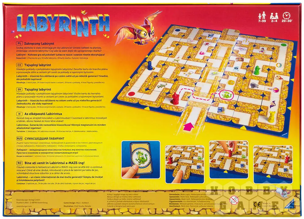 Развивайте свою логику и пространственное мышление вместе с настольной игрой «Сумасшедший лабиринт». Каждая партия игры будет уникальна, благодаря меняющемуся игровому полю и целям игроков, и не даст заскучать даже самым опытным волшебникам. Игра будет интересна и занимательна не только детям с семи лет, но и взрослым, а значит, вы сможете смело собираться семейной компанией за «Сумасшедшим лабиринтом»!