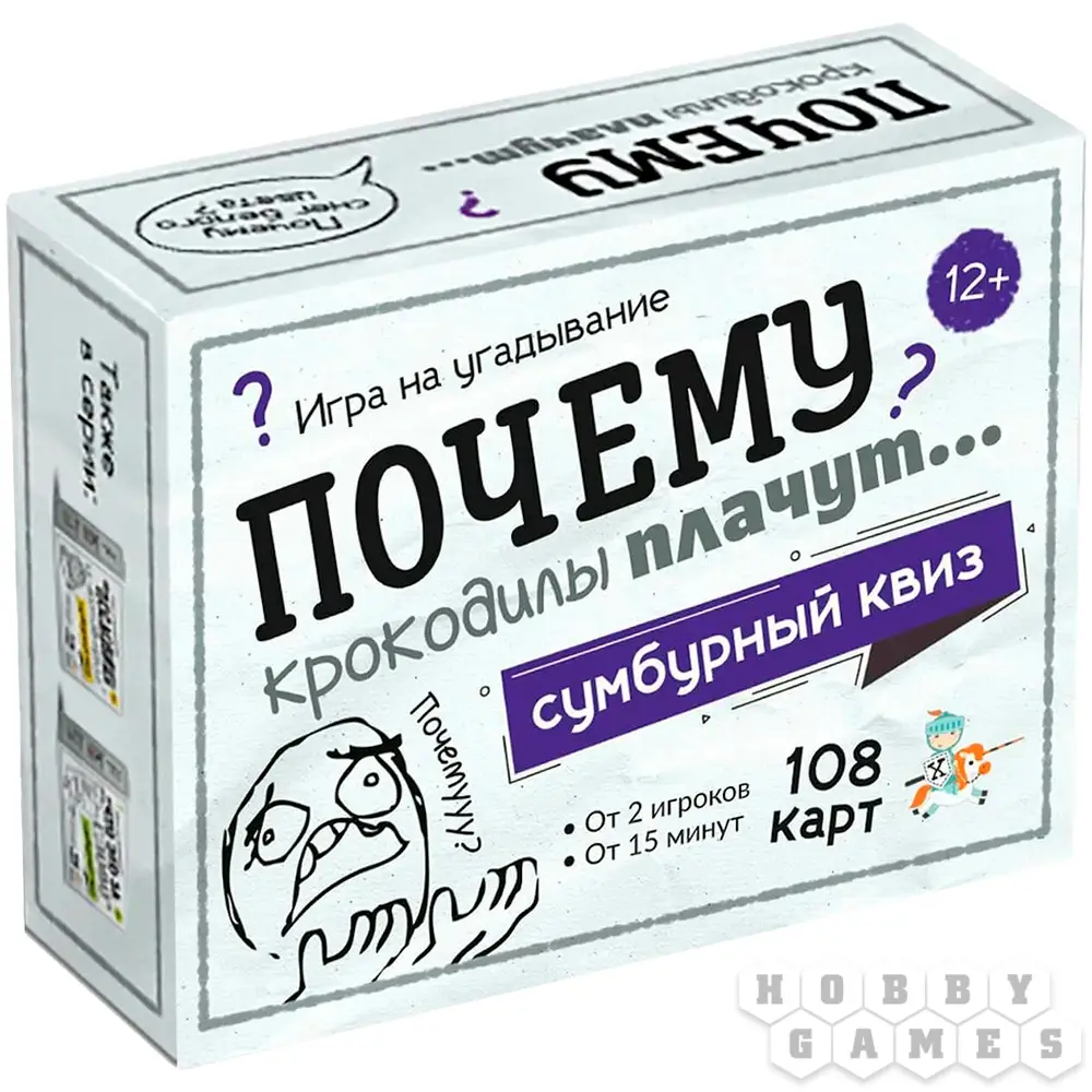 "Почему крокодилы плачут?" – спросите вы. И ответите тоже вы, ведь в этом и заключается смысл этой развивающей игры! Вы будете по очереди тянуть карточки, на каждой из которых написан вопрос и приведены три варианта объяснения. Ваша задача – выбрать верный ответ. Проверить себя просто: переверните карту и огласите написанное на обороте. Если вы угадали, заберите её себе. Настоящим эрудитом станет тот, кто к концу приобретёт самую толстую колоду с честно отгаданными вопросами! А самое приятное, побороться за это звание можно как вдвоём с другом, так и в большой компании!