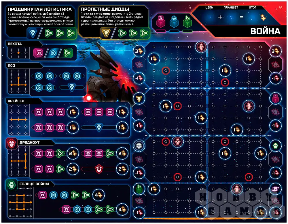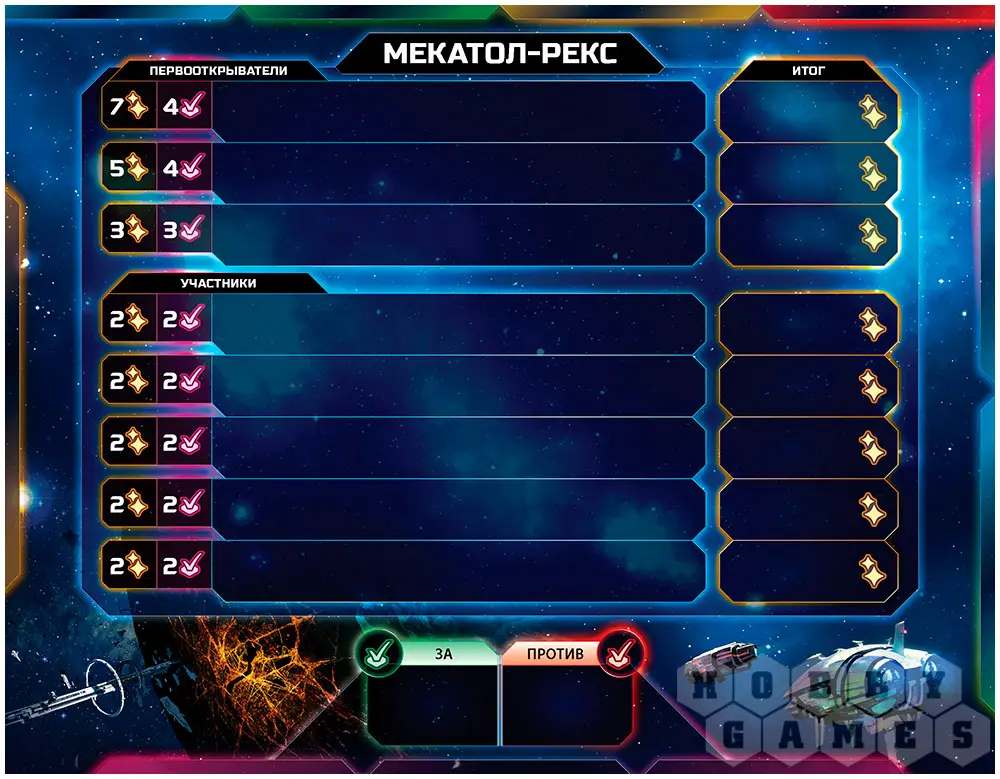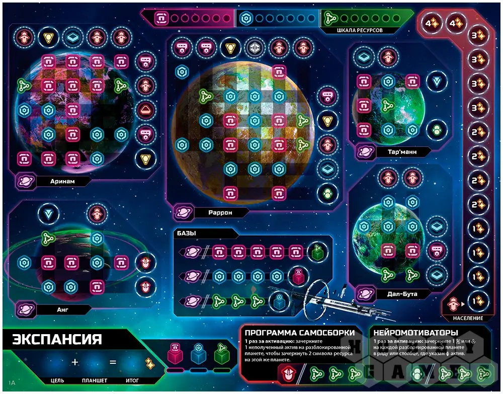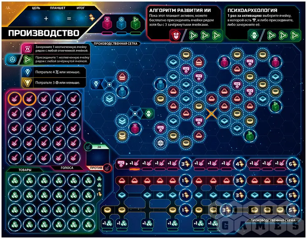 Стратегические – дают игрокам ресурсы для совершения отметок на планшетах