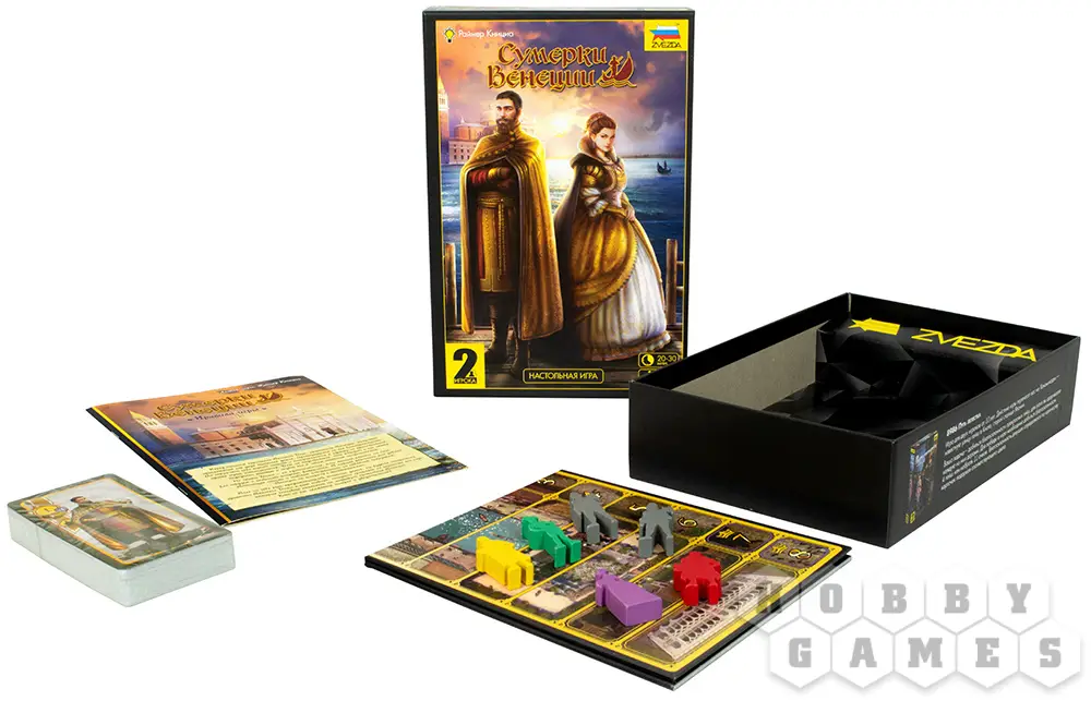 Историю дополняет любовная линия, где ревнивая дама сердца, владеющая многими тайнами Дожа, пытается навредить его репутации. В дуэльной игре "Сумерки Венеции" вы становитесь одним из представителей знатного дома, который при помощи хитросплетений ведёт правителя в один из особняков по игровому полю. Маршрут вашего пути может измениться в любой момент. Будьте пронырливее и остерегайтесь коварных фавориток!